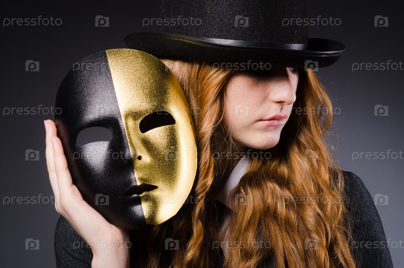 Женщина с маской в концепции лицемерия