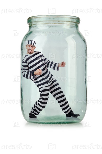 Заключенный в банке, изолированный на белом фоне