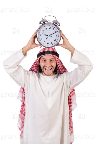 Араб в концепции времени на белом фоне