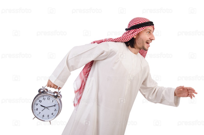 Араб в концепции времени на белом фоне