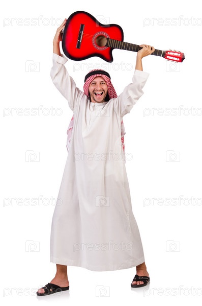 Араб с гитарой, изолированный на белом