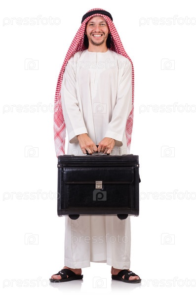Араб с багажом на белом фоне