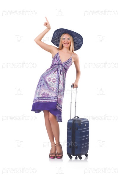 Женщина собирается в отпуск, изолировано на белом фоне