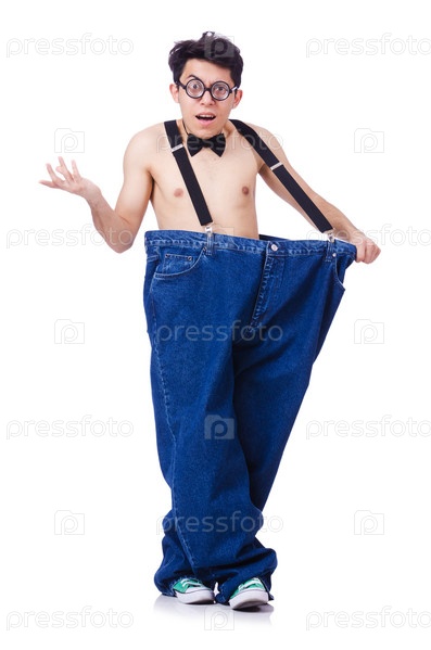 Забавный человек с брюками, изолированный на белом