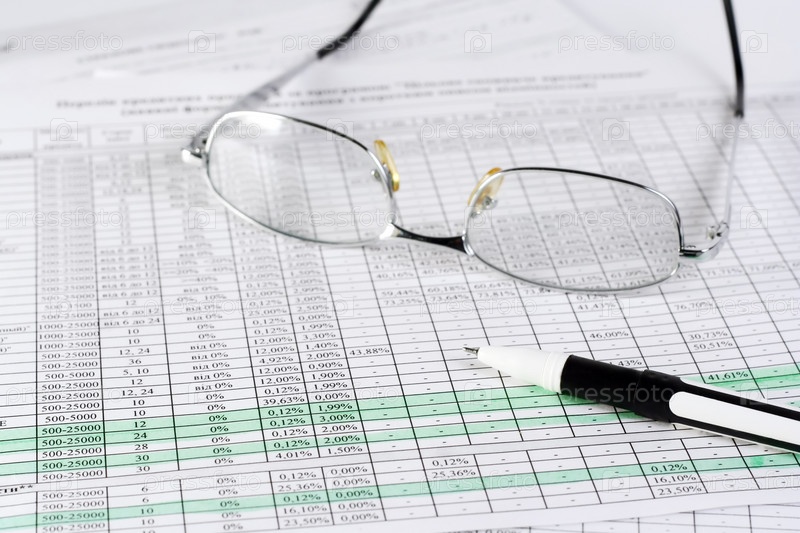 Очки и ручка на таблице