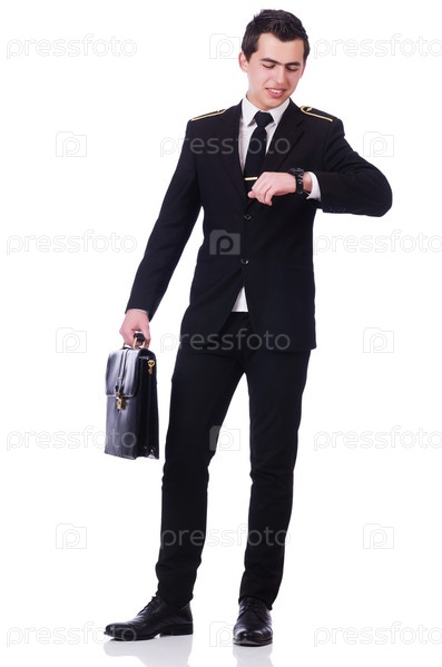 Молодой пилот, изолированный на белом