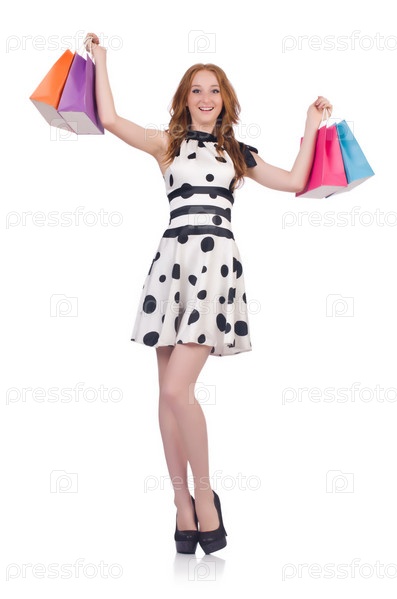 Женщина с покупками на белом фоне
