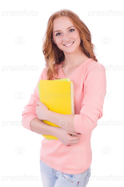 Молодая студентка, изолированная на белом фоне