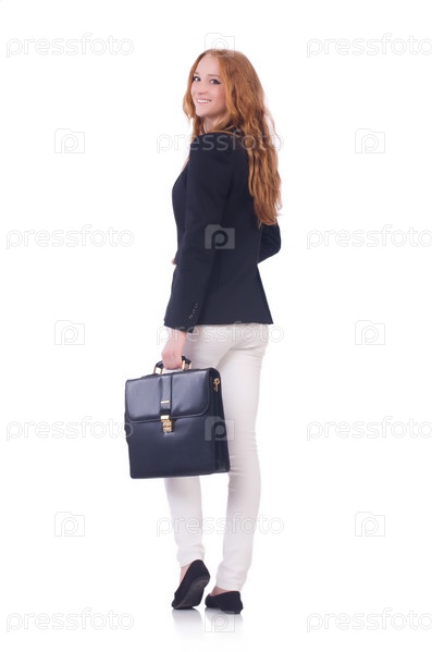 Молодая бизнес-леди, изолированная на белом