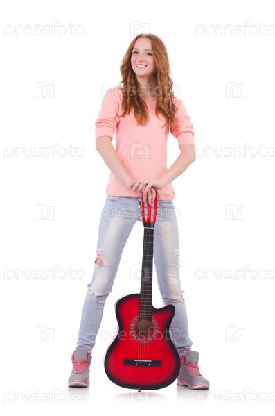 Гитаристка, изолированная на белом