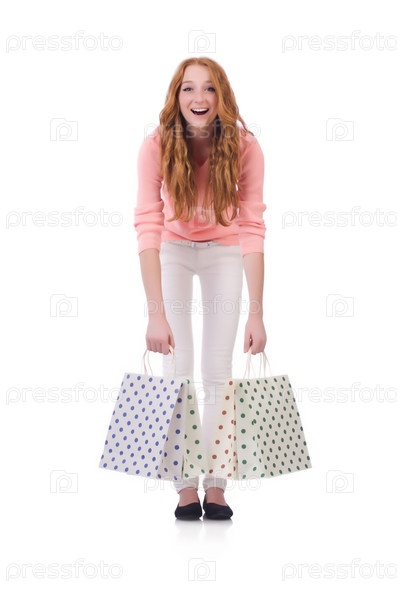 Женщина с покупками после рождественского шопинга