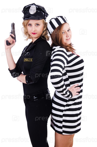 Заключенный и полицейский, изолированные на белом