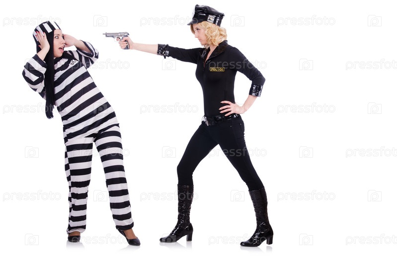 Заключенный и полицейский, изолированные на белом
