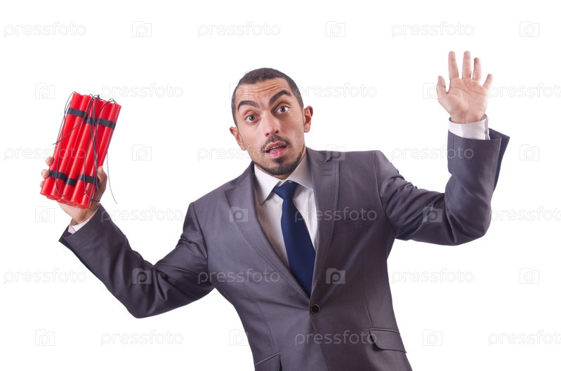 Террорист с динамитом, изолированный на белом