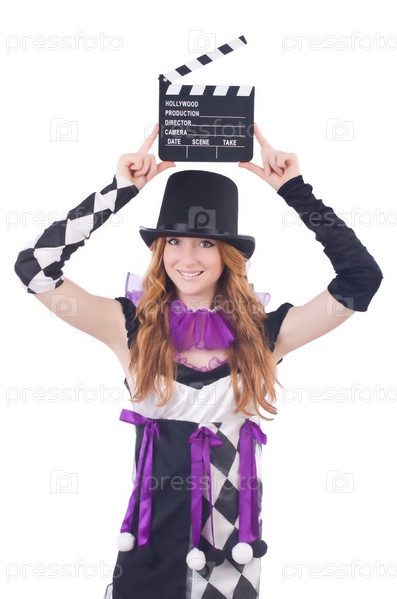 Фокусница с палочкой на белом фоне