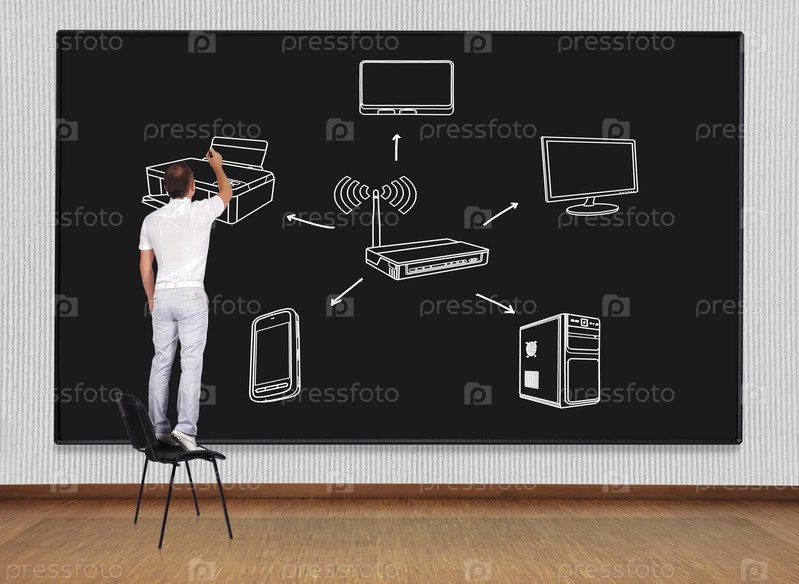 Человек рисует схему компьютерной сети