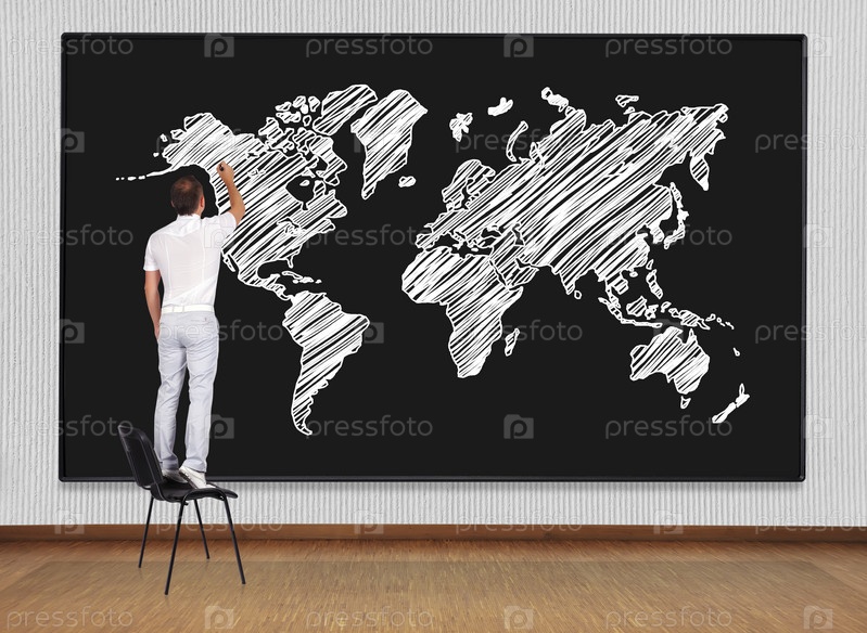 Человек рисует карту мира