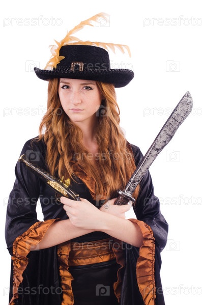 Женщина-пират, изолированная на белом