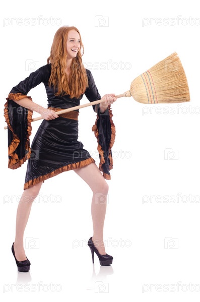 Ведьма с метлой на белом фоне