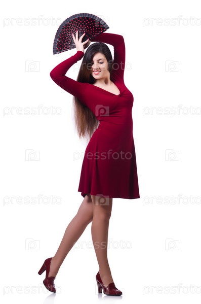 Женщина танцует, изолированная на белом
