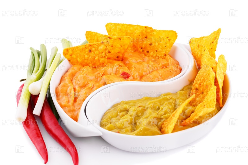 Начос, гуакамоле с соусом из сыра, овощи