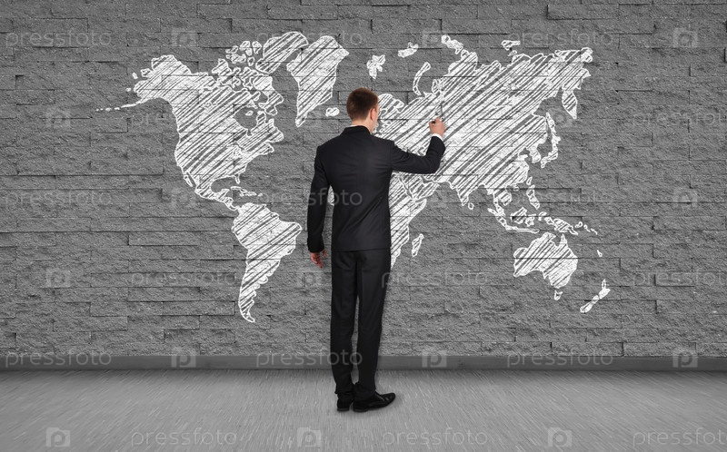 Человек рисует карту мира