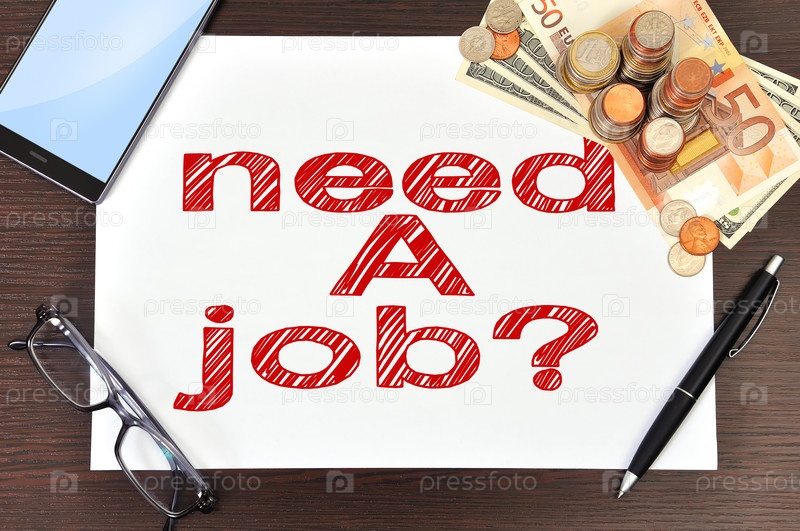 Надпись "Ищите работу?" и деньги