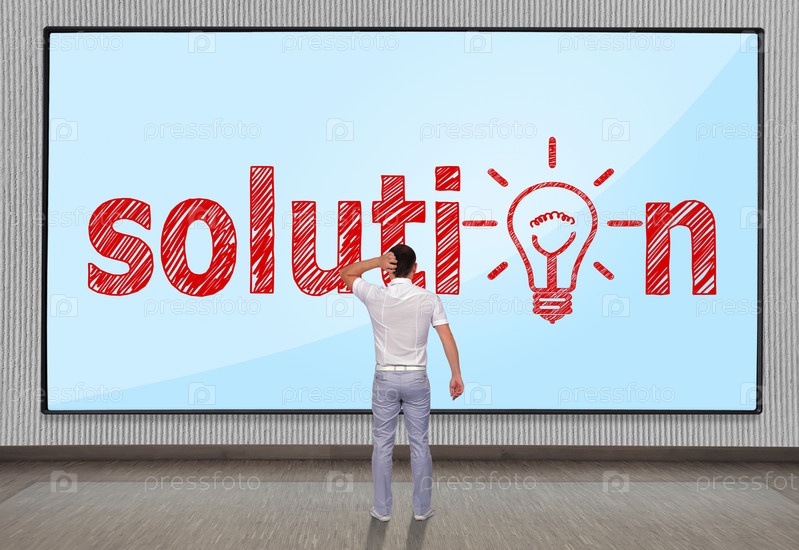 Мужчина смотрит на символ решения