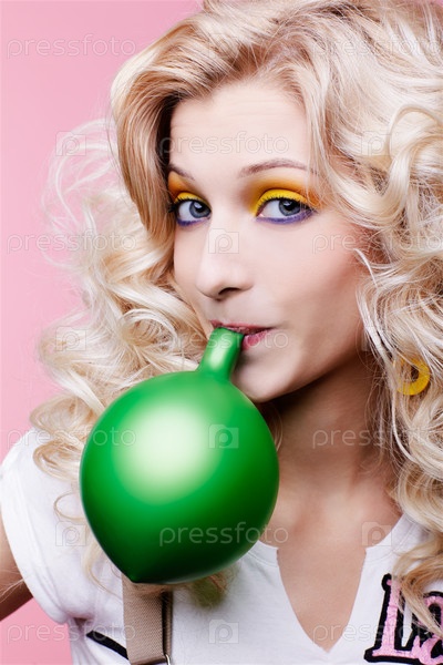 Портрет красивой блондинки с зеленым шаром