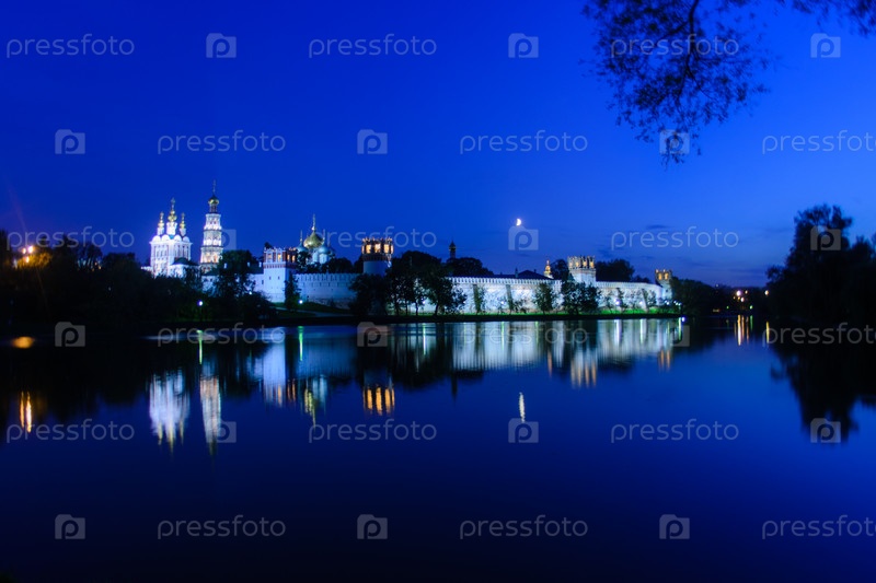 Монастырь в ночное время. Новодевичий женский монастырь, Москва, Россия