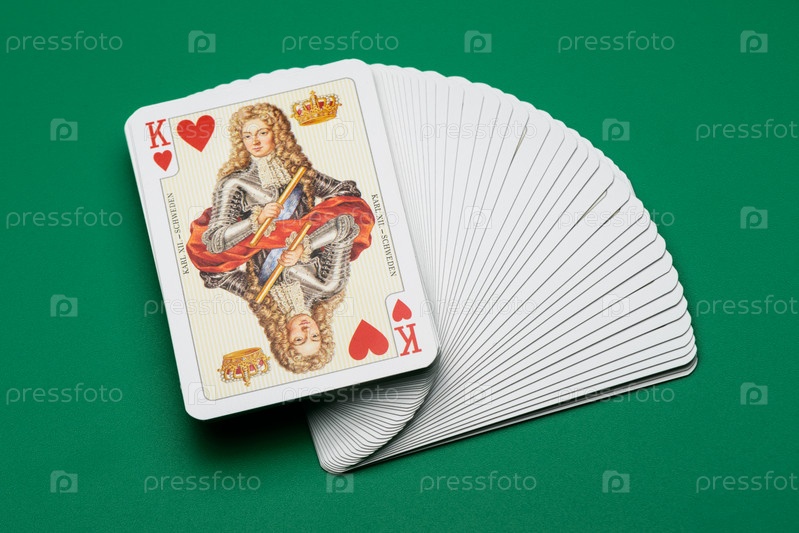 Колода игральных карт, изолированная на зеленом фоне