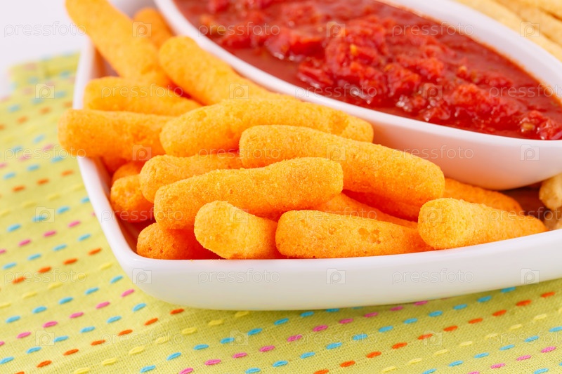 Кукурузные чипсы и соус