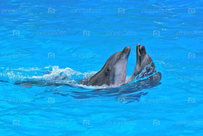 Пара дельфинов танцуют в воде