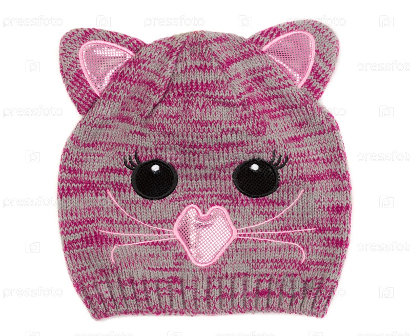 Детская вязаная шапка с узором в виде морды кота