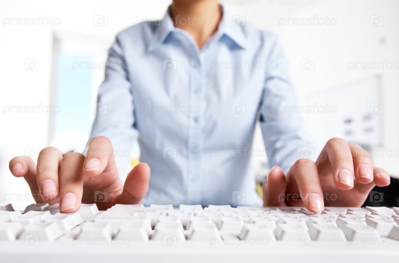 Женские руки на компьютерной клавиатуре