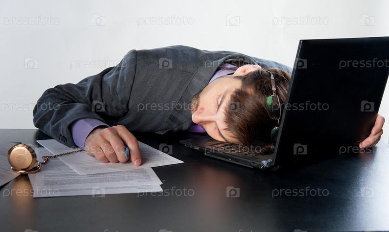 Бизнесмен спит за столом