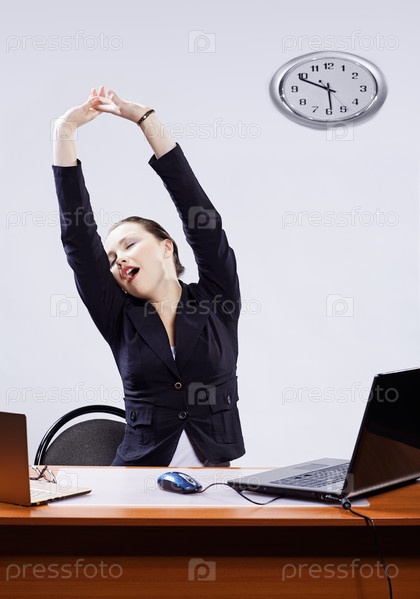 Усталая деловая женщина на рабочем месте