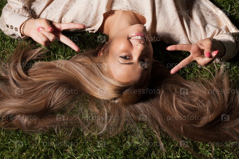 Молодая привлекательная блондинка на траве