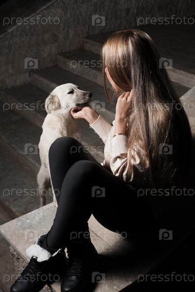 Блондинка с собакой на улице