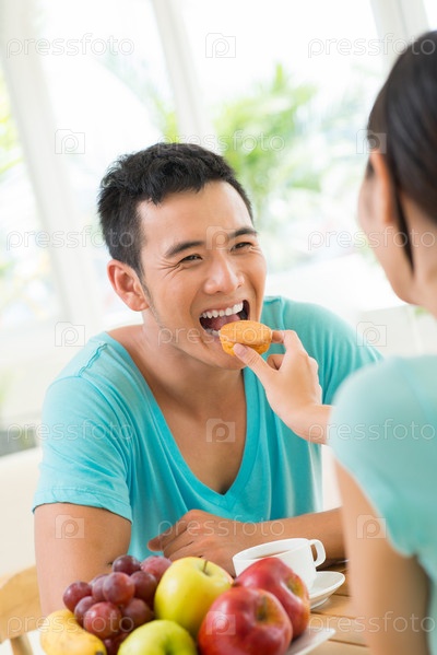 Женщина кормит своего любимого