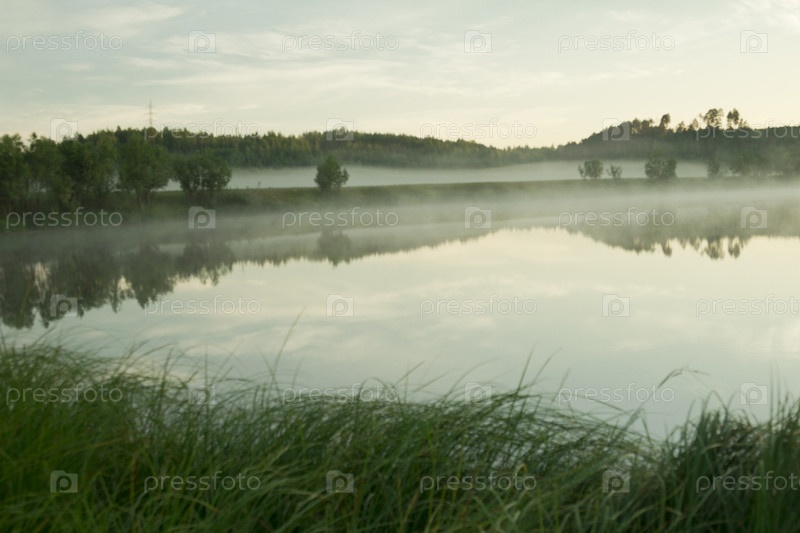 русский луг в тумане перед рассветом