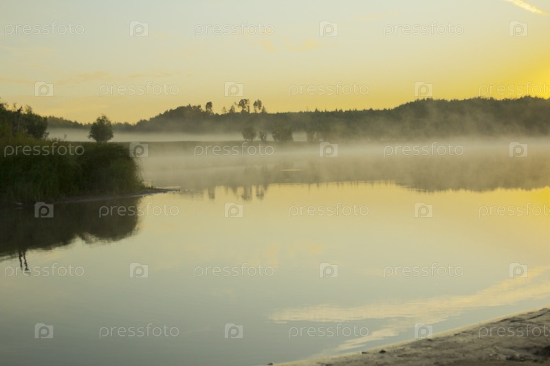 Река в тумане перед рассветом