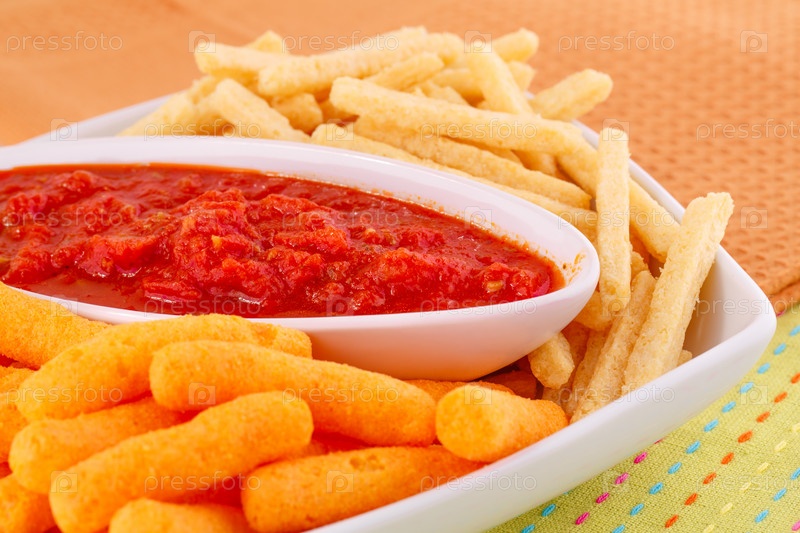 Картофельные и кукурузные чипсы с соусом