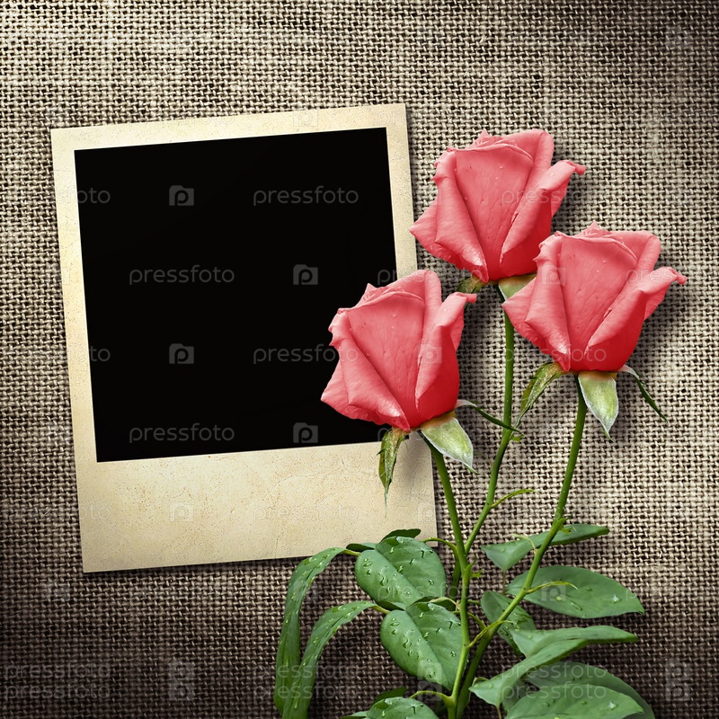 Полароидный снимок и розы на мешковине