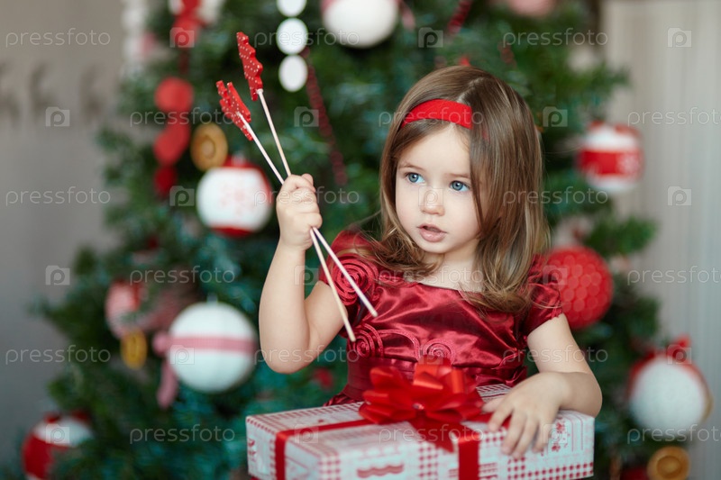 Маленькая девочка возле елки