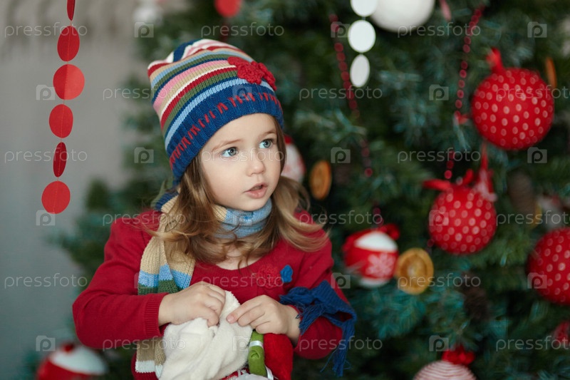 Маленькая девочка возле елки