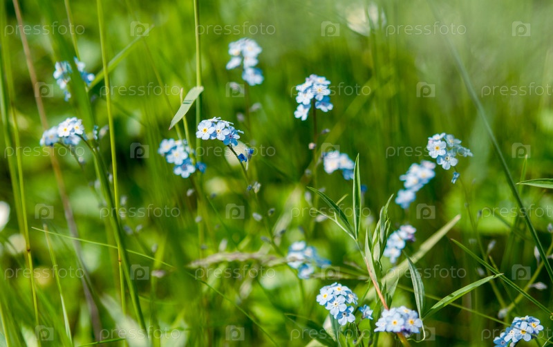 Летние полевые цветы среди зеленой травы