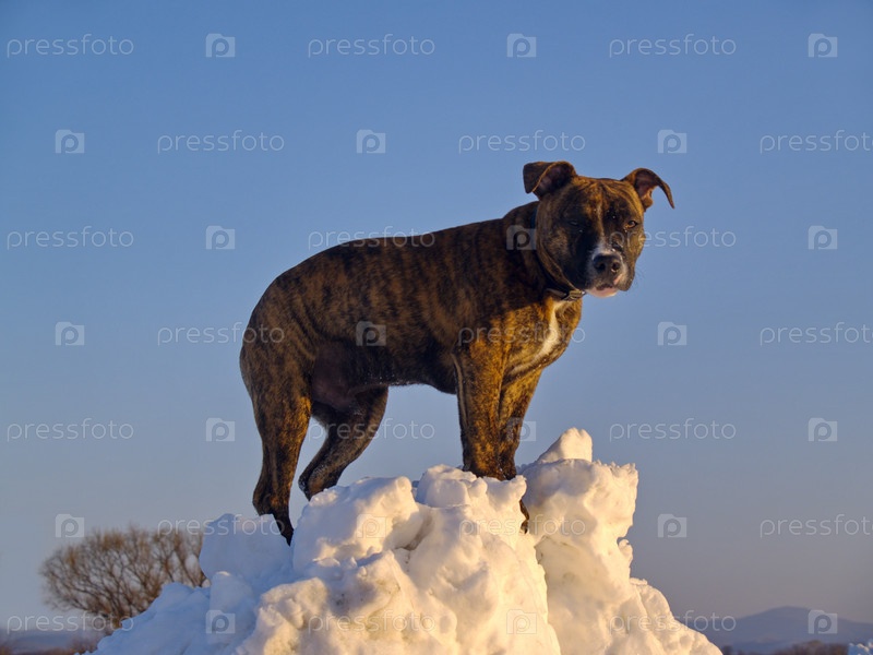 Собака стоит на куче снега