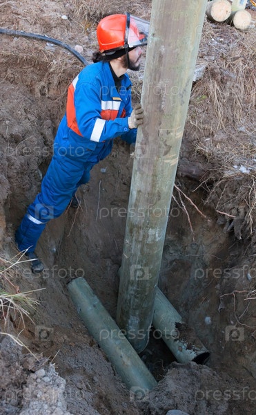 Установка электрического столба в яму