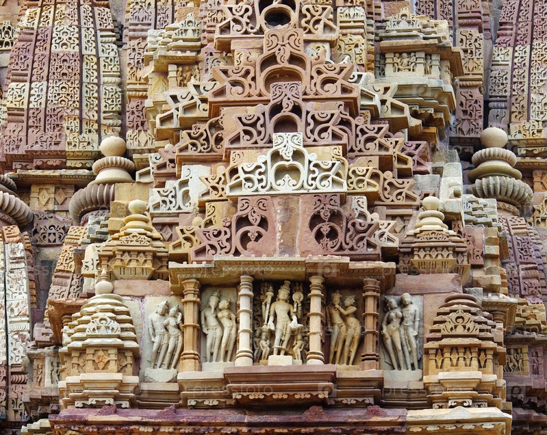Резной эротический барельеф в индуистском храме в Каджурахо, Индия